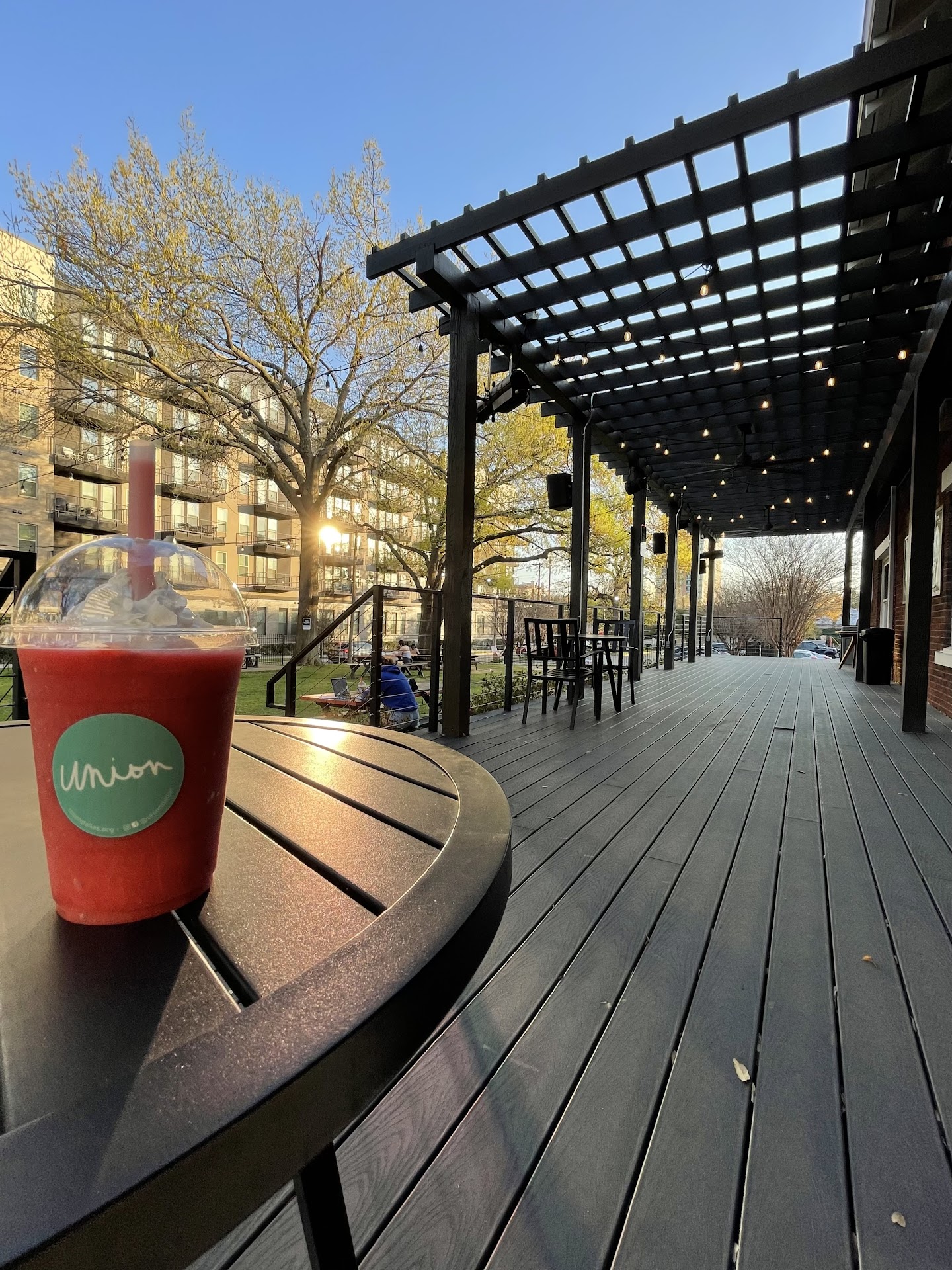 Read moreI won't take off stars because of Quality of service and the drinks are really great, but I just watched the manager kick a guy out who was down on his luck, maybe homeless, he wasn't dirty beyond a reason, and said so other customers could use the table even though there were no other customers and other replaced to sit with the large yard and picnic tables. As far as I know that guy hadn't done anything wrong he had come in after me and sat quietly maybe laughing loudly every once in a while at his phone. It just irks me that a place called Union can't see the picture of being United regardless of any barrier whether it be social, financial, physical, mental or otherwise. If your trying to be unified you don't just throw a person away while they are enjoying themselves, even if they are just drinking water, they are a person enjoying the environment your providing them to feel comfortable. All I ask is that if your claim is your Namesake, you might ease up your heart a little and try to figure out how hard some people might have it, especially during a pandemic, the black plague was also a pandemic, so think about how hard life might be out in the streets. Really that manager should go and take the other guys situation for a few days and see how hard it is. I know because I used to be there. Unify, not Defy People...