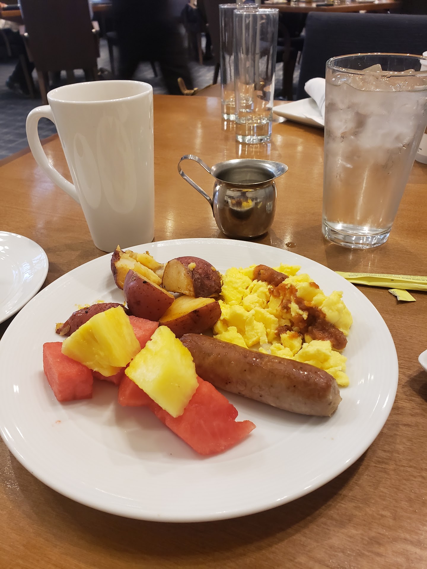 At $22 with a limited selection, it’s only worth it if you can expense the meal. The eggs, sausage and bacon were all cold/room temp.