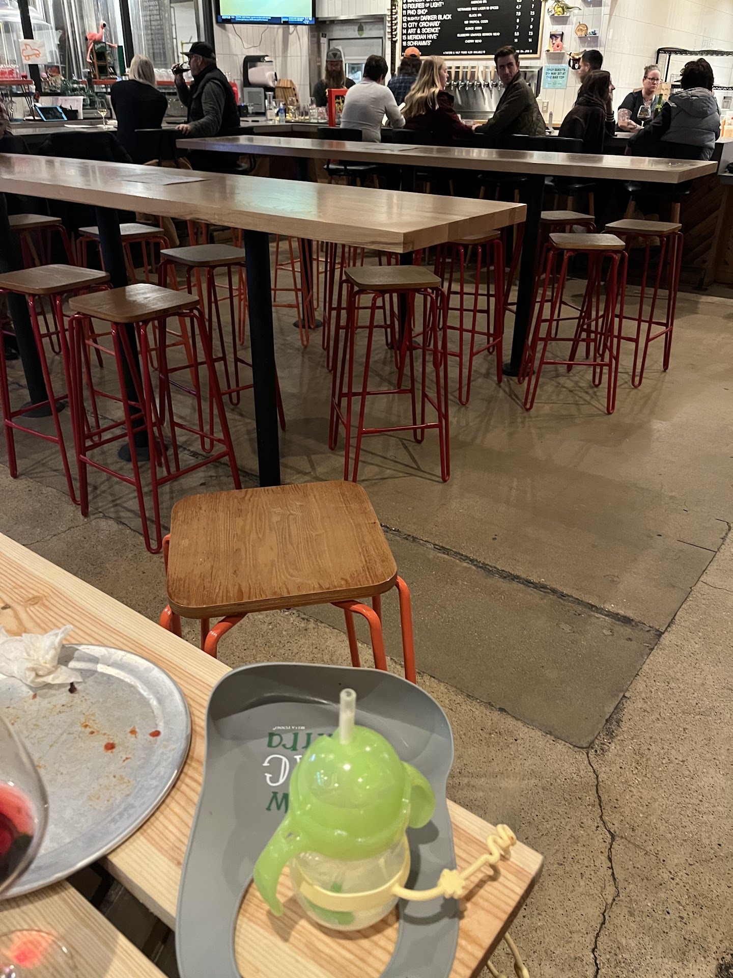 Thirdly, let's talk service. It's not good. They act like it's a hassle to wait on you, and I do kind-of get why - I've seen countless families (if you aren't a fan of kids running rampant in breweries, don't bother trying this place out at all) stand at the counter, indecisive and taking their time consulting their kids as to what they want, which isn't the brewery's fault ultimately, but I digress.... Even after they take your orders, I've been ignored countless times and had to ask for my beers that I ordered. The staff behind the bar are too busy talking amongst each other most of the time to really care about who ordered what, and then when they finally hand you your beers, they act completely bothered about it.