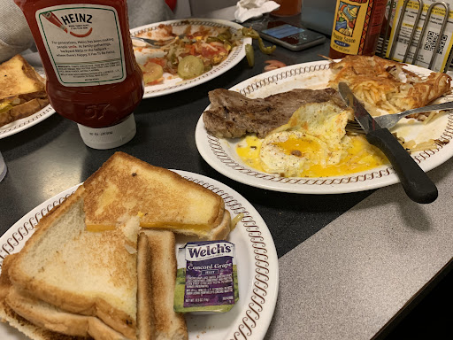 The ONLY reason I did not give this a 1 star is because the Food (once we got it was very good). I went late morning on Tuesday about 10:30a. We sat at a dirty table (no choice cause they were all dirty). Then after about 15 min. In a slow restaurant the waitress that was busy chatting at the counters tells us (across the restaurant). I'll be with you in just moment. So, wait, Chatty Patty is our waitress? ANOTHER 20 MINUTES go by. Finally, we asked the waiter in the next section for some coffee and to order....well over 40 minutes after sitting down..... didn't think that was unreasonable. Finally, Chatty Patty comes over and asked "what we wanted" and without even a pause I said "we wanted some service if you're done with your conversation. She EVENTUALLY brought the coffee....just the coffee....no cream, no Sweeter. Never got a refill. Then the food arrives,,,,in stages.....one-waffle-at-time. Both orders had ham, she puts both pieces on one plate and places it in front of one person. We never did get our complete order, then when I ask her for the rest of our order, she get an attitude. (Because I was clearly not happy with her service). Then says shes not serving us anymore. REALLY? GIRL, your service was so bad THAT wouid have been very welcomed. The older male waitress says she was "green" if so then W.H. needs better training. And all the while the other other employees (who were chatting and working just fine), were totally blind to the neglect of her table. If you MUST have WAFFLE do NOT go herel, but if you do, make sure the brunette waitress (who typically ain't doing nothing) not you're server. If she is, then you've been warned, cause she thinks she did nothing wrong. Absolute worst service I have EVER HAD at ANY establishment. They would be smart to show her the door or provide her with MUCH MUCH, MUCH...