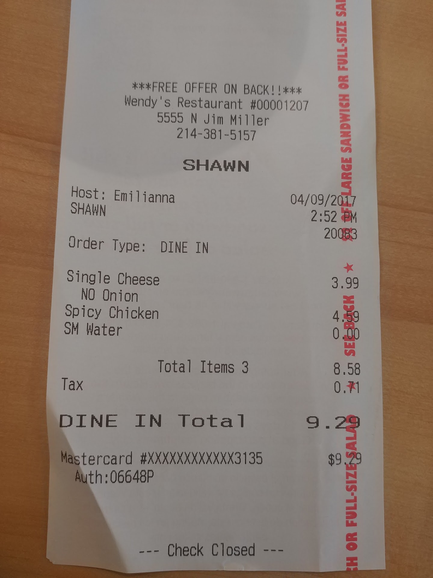 Read moreI use to love coming here when a Hispanic manager was in charge of the store not sure what his name was but he was great fast service super polite and he had the store great and running . Came here to eat today after the remodeling first thing didnt feel welcoming I said hi how are u to the girl who took my order she totally ignore me. Then they got my order wrong they fixed it . Machine dint work had no ice my DR . Pepper didnt taste good it was flat and tasted like root beer to me . After that I was ready to eat my food and my chicken burgers had so much mayonnaise the bread was super soggy fries tasted funky like if they havent clean there fryers oil in months there was no ketchup and at this point i had enough didnt enjoy any of my food or service. This was around 1 PM it was super slow employees where staying standing around so there for manager had enough employees at the time for it not to be ketchup at least . As I am writing this review my stomache is hurting bad 😵😵 no lie I think I am getting sick over this food will not be coming here ever I rather 100 times rather go eat at chick fila where they have great service on point✔ always welcoming ✔ and very good this is a Sunday so unfortunately chickfila closes . Over all Wendy's is a no for me...