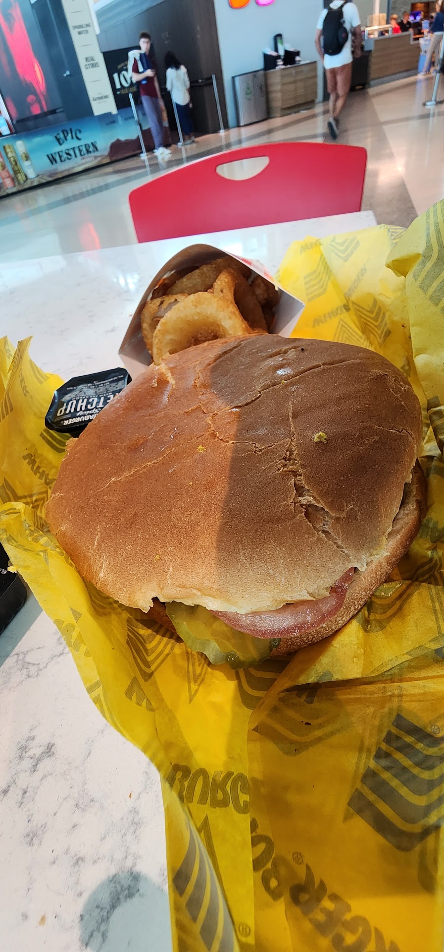Read moreI'd like to say that I flew to Texas just for Whataburger, but my flights got rerouted through Texas instead. At least it allowed me to try out Whataburger instead. Honestly, not all that impressed. The line was pretty long, but it was moving at least. Having a line is a good thing. I ordered #1 (Single Whataburger) with cheese & a Spicy Chicken sandwich just to try em out because I heard good things about em. I also got honey mustard & jalapeño ranch sauce as well. They forgot my honey mustard sauce so I got to go back for that with no issues. The honey mustard one was pretty good with a right amount of tang and sweetness needed. Jalapeño one, not worth writing about. Honestly, I thought I was expecting to get hot (temperature) food, but I was mistaken. The chicken sandwich had nice spice, but nothing special. The burger was decent, but average, with too much mustard. This sandwich was also lukewarm if best. No milkshakes unfortunately. What is this, McDonald's?