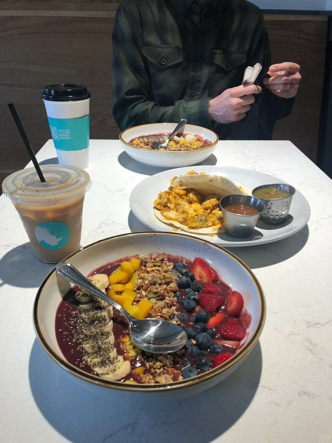 Read moreService is clearly not their forté! Great location and a nice shop with ample seating even at super busy times. But a bunch of different interactions with a bunch of different employees on my first visit left a bad taste in my mouth. When ordering, my S/O and I were both informed very directly they were out of the drinks we wanted. What we ended up ordering was still good, though. Food and drink pickup was disjointed too, just seems there isn't much intentionality with the whole process. Then when we were leaving an employee just out of the blue said they were about to call to have our cars towed. We parked behind the shop, in the uncovered spots. There were no signs in those spots that would indicate it was a tow zone and paint on the pavement was worn so much that you could make out “towing enforced” just barely on one of the spots. Apparently those spots were really “important” just not important enough for proper signage. If I couldn’t read the paint in my sedan, just imagine how difficult it'd be for someone pulling up in a lifted 2500 HD crew cab!