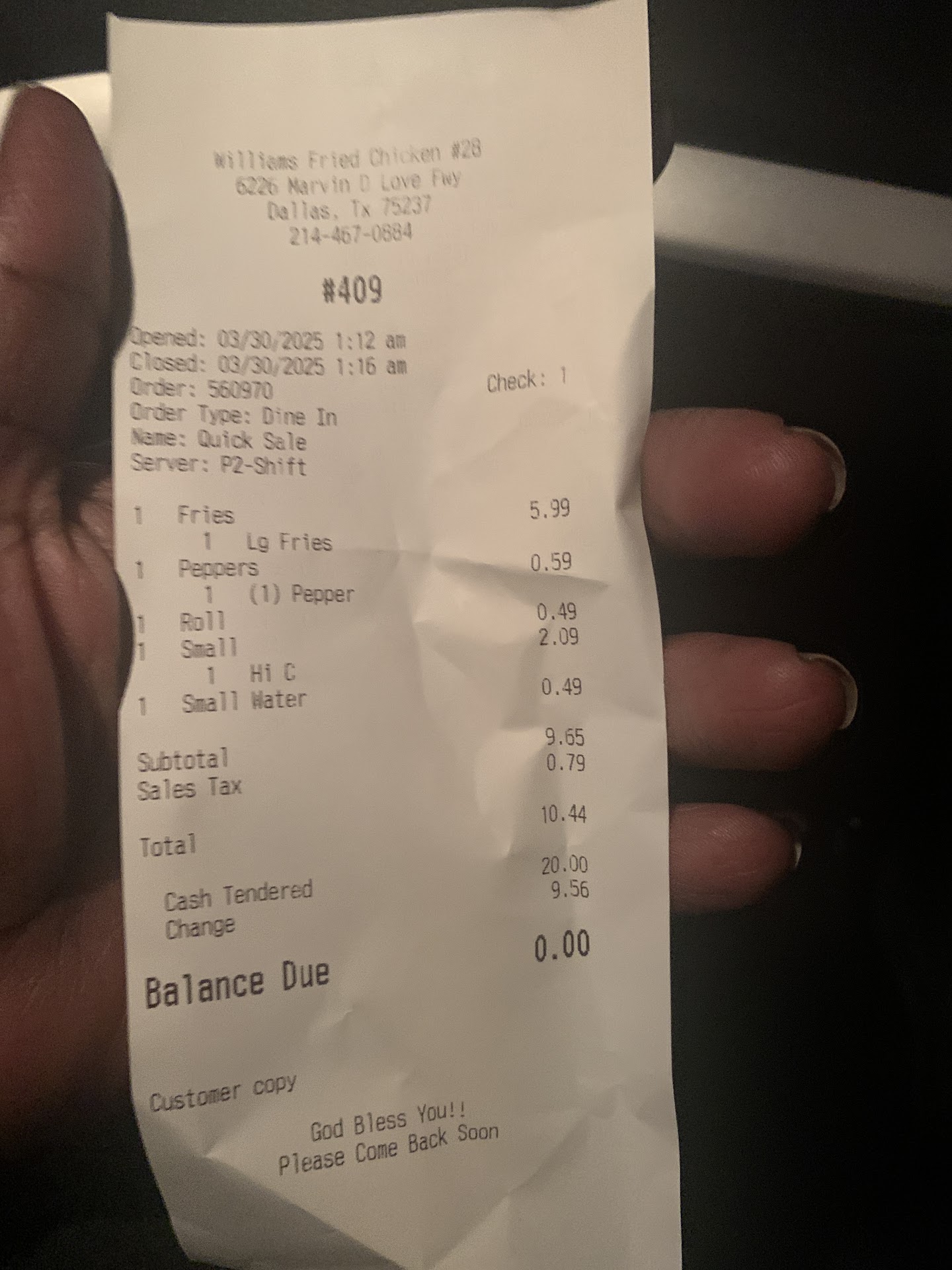 Read more0 stars. Quality of food was terrible, not fresh. Paid with my debit card on June 17th and drove off without getting it back from management accidentally. I didn't realize it was missing until the following day whenever I received alerts. That was the last place my card was used and last time I had it in my possession. The very next day someone was attempting to make 2 fraudulent transactions from Doordash and Cash app. I contacted the location and asked to speak with management about my experience & debit card not being returned/left. Advised mgr regarding unauthorized transactions were attempting to be made (card was only locked at the time). He made a rude remark then hung up the phone which further let me to believe it was an employee attempt. Highly disappointed in the Dallas-Red...