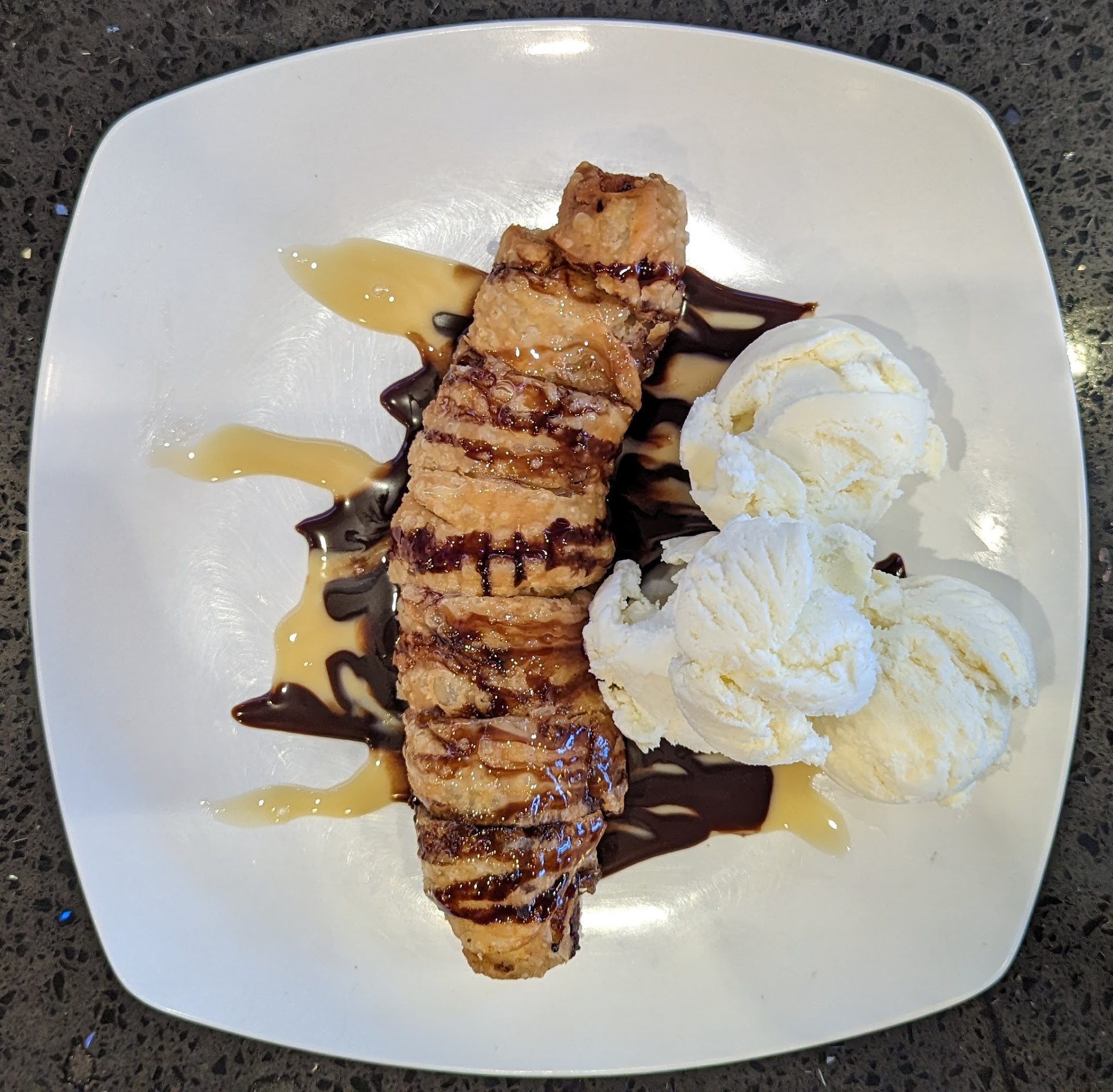 The Thai pepper steak and the red Thai curry were excellent, and cooked to perfection. The taste was very exquisite and on a slightly spicy side, which I love! Good for 2 people. 3, if other items are ordered.