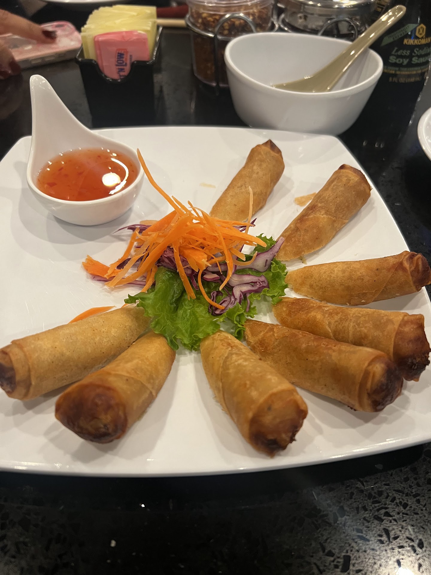 Spring rolls had good filling and good for 2 people, along with other starters.