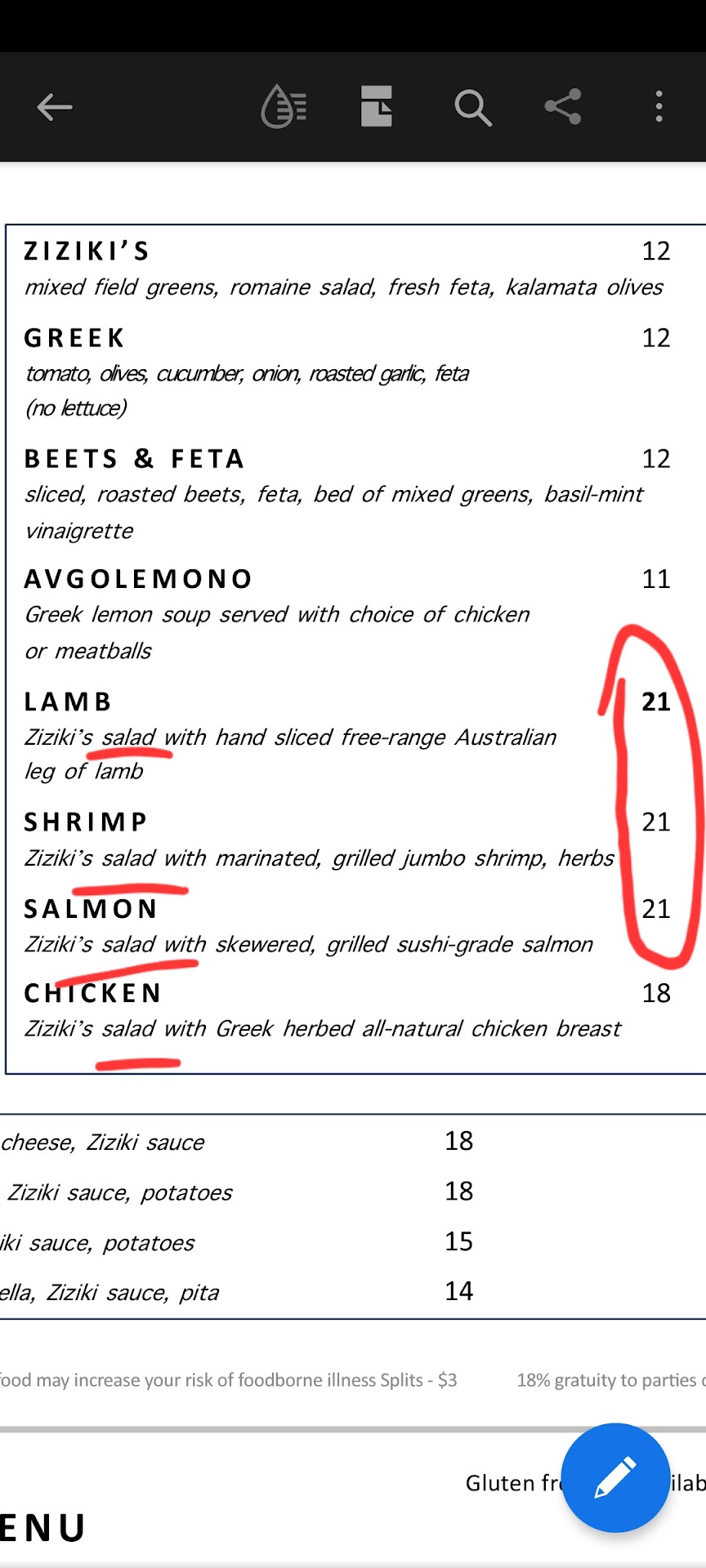 The salmon souvlaki came out and the lamb souvlaki as well and both were just okay. Their side potatoes were warm which made me think they were premade or just sitting there and not consistent with the protein… not worth $24-$25 each.