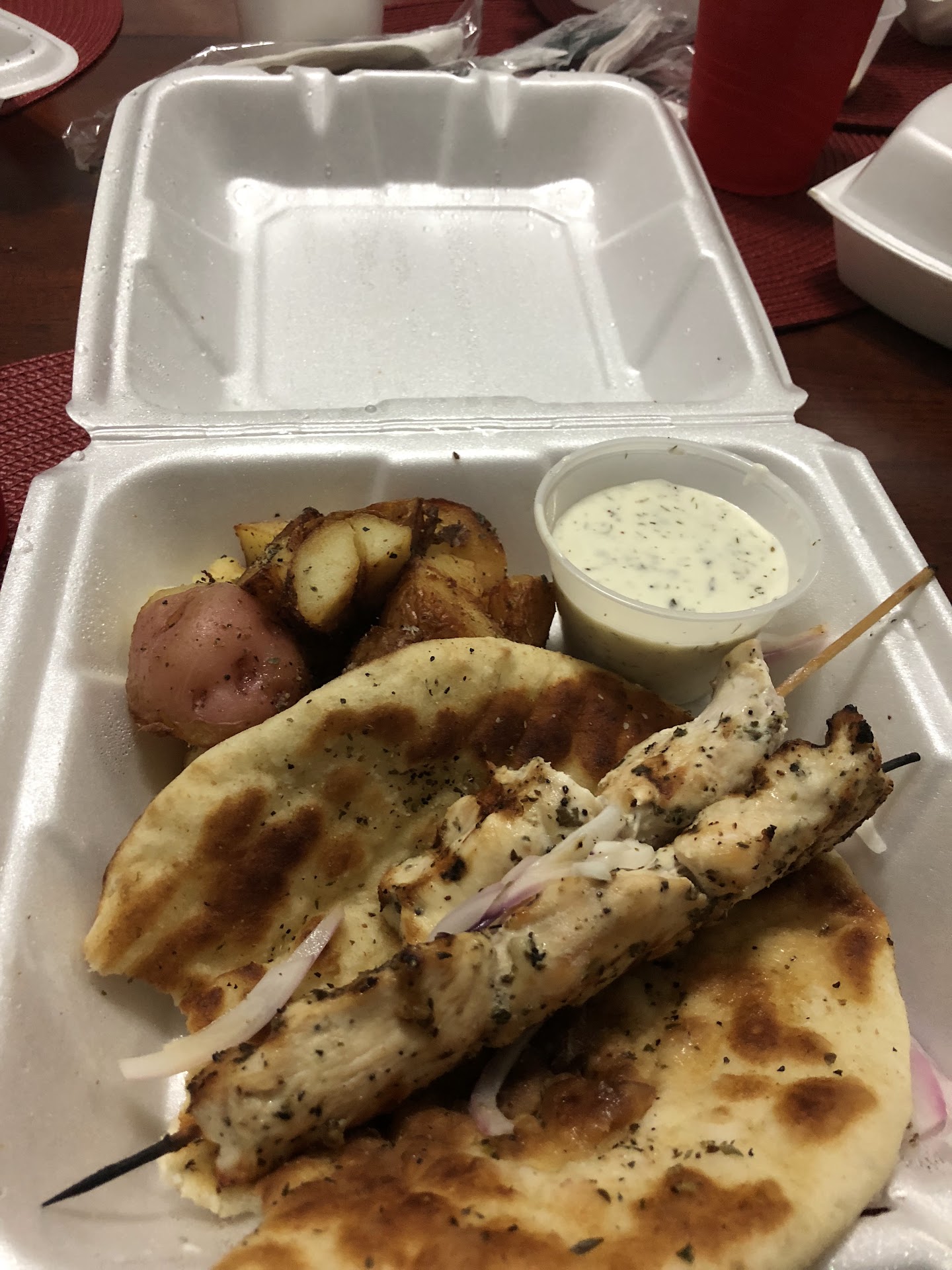 Firstly, I ordered a souvlaki salmon dish and we ordered a souvlaki lamb dish. Both were chosen from their lunch special menu. I also, ordered their chicken lemon soup which is a must in Greek culture. Almost every Greek restaurant has a chicken lemon soup that is usually the same (some better some are just okay) regardless, you almost can’t go wrong with ordering this! It was the worst part about my meal. It came out and as it came out, I noticed and smelled so much dairy of some sort… I was so confused considering this isn’t how it’s made or done (culturally or in the states). It’s a straightforward chicken soup sometimes with rice in it and sometimes not and lots of lemon! It came out as if it was chicken and cheese/dairy loaded soup with zero lemon… so I just left it alone. The waitress came to check on us and asked me if I’m enjoying the soup since she saw it’s not being touched and I just asked her if there’s dairy in it and she said, “umm yeah, I think so” so I told her I didn’t enjoy it and she politely took it back.