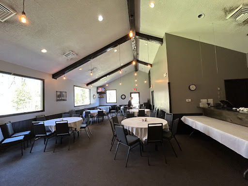 The building is conveniently located just off US-31, yet nestled perfectly in a wooded location. The angled high ceiling gives the place a cabin feel.