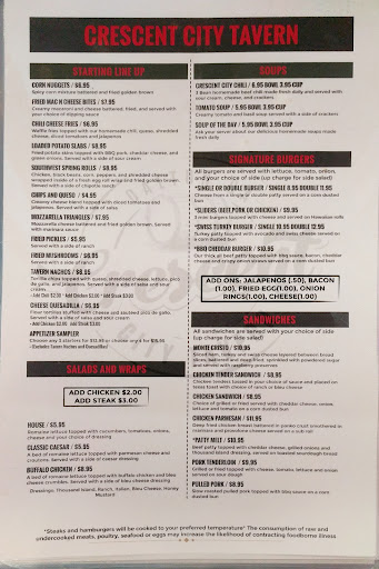 They have the typical tavern fair, with a twist. It's actually good. I had a patty melt that was approximately a third of a pound of meat, cooked to my temperature request, and the wife had the steak quesadilla.