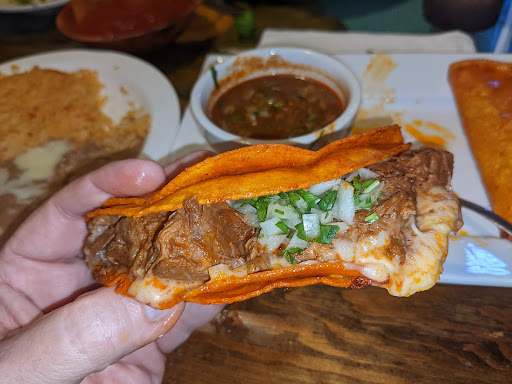 Search reviews Willie P. Dalton, GA 351421 10/12/2022Updated review 5 photos I have seen many postings about Birria Tacos, so when I saw them on the menu, I knew it was for me... Excellent choice... totally different from any taco I have ever eaten... seems the tortillas are grilled with a dose of the cooking juices of the meat... that permeates the tortillas... then stuffed with cheese and very tender stewed beef. Topped with onions and cilantro and served with a generous cup of dipping sauce. It was incredible. Cost about 11 bucks and change for three tacos. Trust me worth it and then some. Of course, I had a house margarita which was terrific... no weak drinks here... overall five stars all the way... next visit... put this...