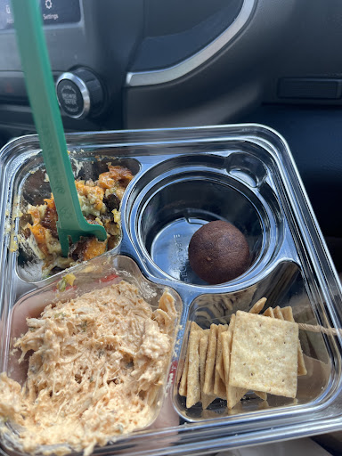 We walk in and realize it’s like a build-your-own bowl kinda place. I think their protein was variations of chicken salad, but also had a righteous spread of sides. The dressing was all house made, and I want to say it was all vegan.