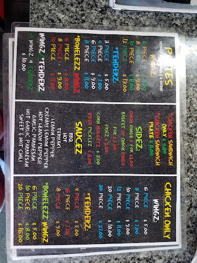 Read moreSmall building with a super small parking area. If you are going to eat here, I'd advise you to get it to go. The inside is not the prettiest or the cleanest. The bathroom is DISGUSTING. When I ordered, she said it would be 10-15 minutes... it took 50 minutes to get my food. I asked what was taking so long, and she said they were boxing it up, but it still took another 15 minutes to get my food. All I ordered were 10 piece wings hot with fries. Should not have taken that long. Then, after all that, my food was HORRIBLE it tasted old and was way overcooked. Fries were super hard, and the chicken didn't have much meat bc it was way overcooked. I've been here years ago and remembered loving their wings, but I def will not be back. The lady was super nice, though, but I didn't like being lied to. I really hate to leave this review, but it definitely needs to...