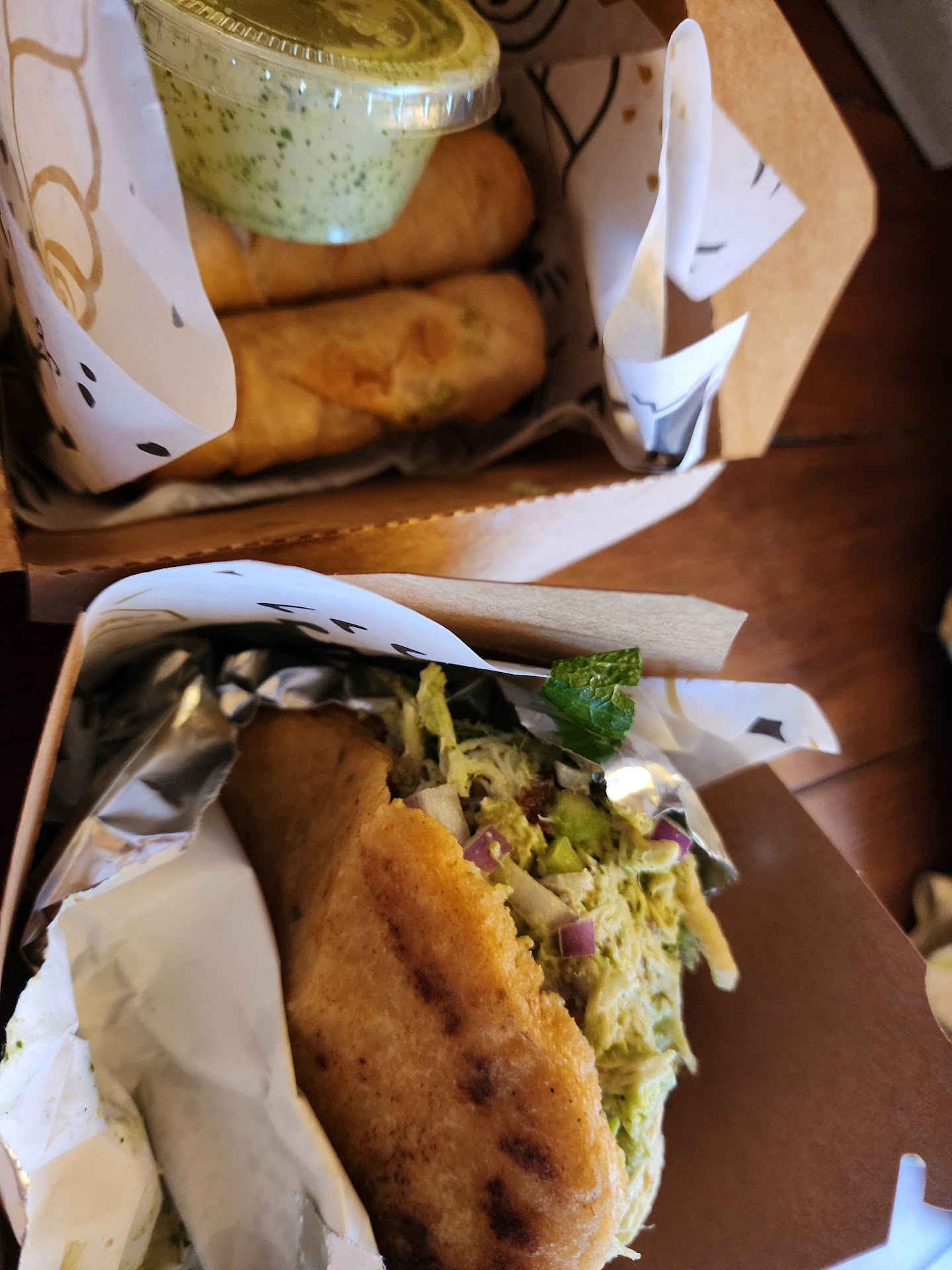 This place is a local GEM. I use to go to 225 here weekly but they got their own place in Arlington by UTA. However, this place will be one of my new go to's for a treat. The food is super fresh. I had the queen and some cheese Stix. Yes, three of my cheese Stix didn't make it into the photo for some reason - they taste like homemade pigs in a blanket but instead of a hotdog, substitute a big block of cheese. With the very salty but taste green sauce, this is a great way to start. The Queen is eventually a Venezuelan chicken salad but in that crunchy corn wrapper, it's a dynamite choice. If you've never been give them a try here at Ghost park off of Arkansas lane and Bowen...