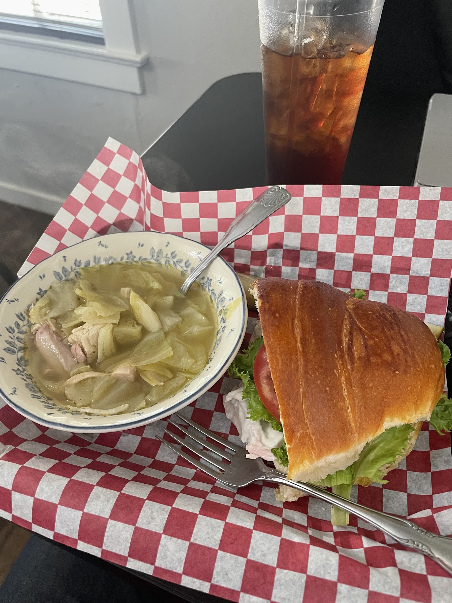 I met a friend here for lunch after seeing the great Google reviews. The space feels a bit cluttered, but the food is amazing and the staff is super welcoming and kind. There is seating for maybe six groups inside; no outdoor seating. You can order ahead and takeout or have it brought out to your car. The signature sweet tea is SO delicious and has a touch of cinnamon in it. The sandwich options were inventive, serving size was very filling, and the pricing cant be beat for the quality! Menu prices include a drink and chips. The big bummer is that they aren't open Saturday?! We...