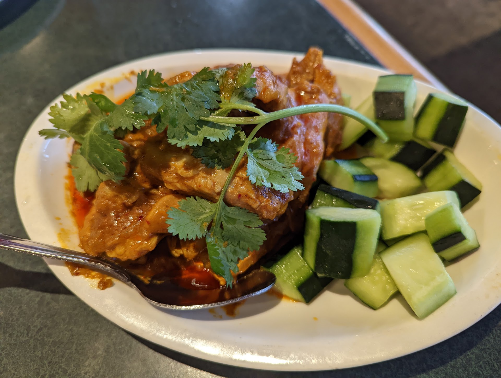 We ordered the salted cabbage and bean curd soup (Did not specify it had shrimp on the menu, and I am moderately allergic to shrimp). When the soup came out, we politely asked our server (bald headed guy) if they could change the soup since I mentioned I was allergic to shrimp. The new bowl of soup came back suspiciously quick, and to my fear when I was halfway thru my cup there was a little shrimp piece- seems like they just scooped out the shrimp from the previous bowl!