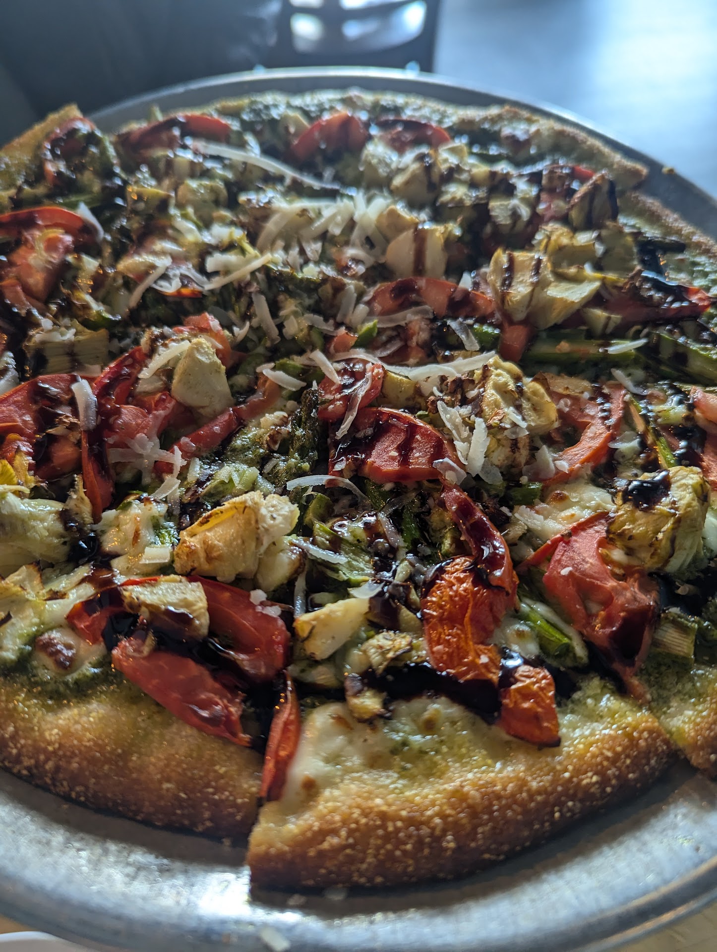 We also got the personal individual pesto chicken pizza and it tasted healthy and light. It was a bit bland and I would have liked a bit more garlic pesto taste.