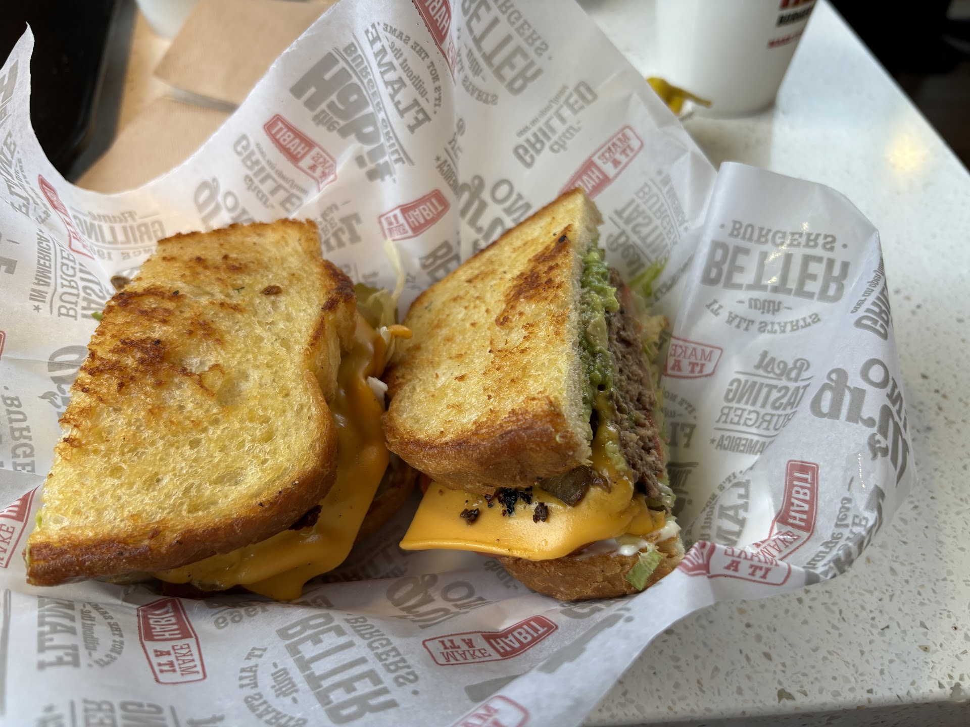 Into the car I go and we drive off. On the freeway my wife opens hers and guess what ... mayonnaise. So, ugh ... We all go back and they make a new one. Correctly! With no mayo. But guess what? We are family and we like to eat as one. Now everyone else's burgers/sandwiches/fries are ice cold. The manager was unwilling to do anything to fix that. Didn't think that was the fault of Habit. So, we all wait until we got home and turned the mess into a hot mess in the microwave. At this point we were starving, the buns were soggy, had to seperate the meat from everything else to put it in microwave because honestly, who likes hot lettuce, tomatoes, and pickles?