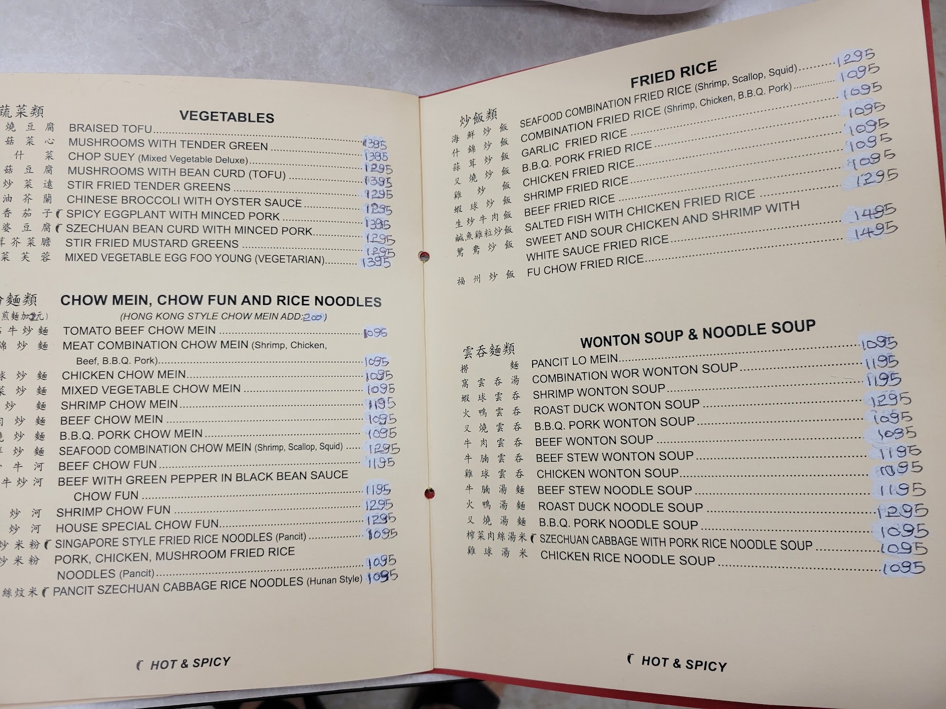 Original review: Indoor dining has not re-opened. I spoke with the counter lady and they don't plan on doing it anytime soon. Tonight I tried their dinner combo A $32 for two people. It comes with a small wonton soup, egg rolls, sweet & sour pork, broccoli chicken and BBQ pork fried rice. In terms of taste, they usually nail the traditional American/Chinese dishes spot on. They have been there for decades. If there aren't that many people waiting, they are fast on the orders. In the past, I usually order their Hong Kong style pan fried noodles (they put the noodles on top of the sauce so that it doesn't get soggy when you get home), salt pepper spare ribs, salt pepper chicken wings, chow fun and other noodles. Little...