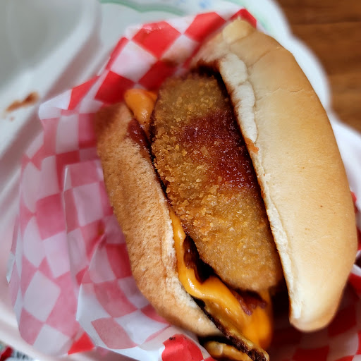 One cashier, one cook, one person assembling orders at noon. It took almost 25 minutes to get my order. The burgers did not have grilled onions, but they did have pickles. They were way overloaded with that sauce, and it just seemed slapped together. I had to take them apart to redo them, just so it was stacked well. This is when I noticed that the tomato slices had the stem part. Ugh. Huge pet peeve.