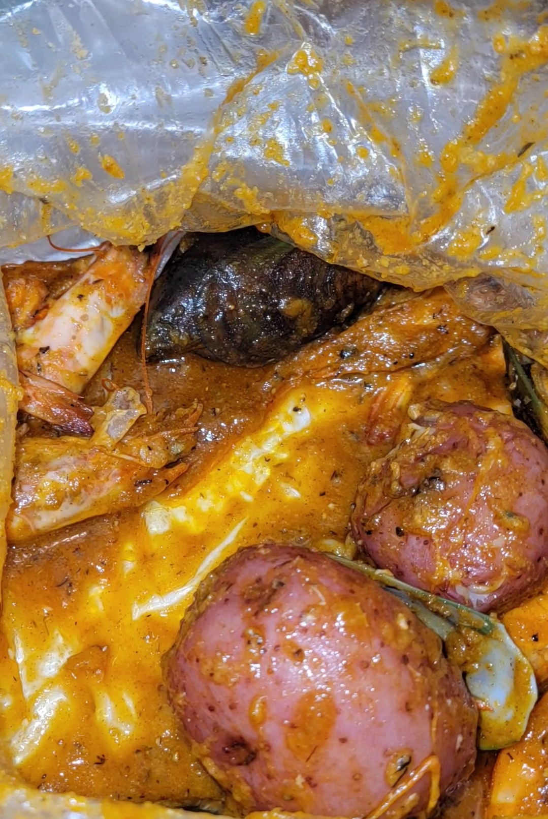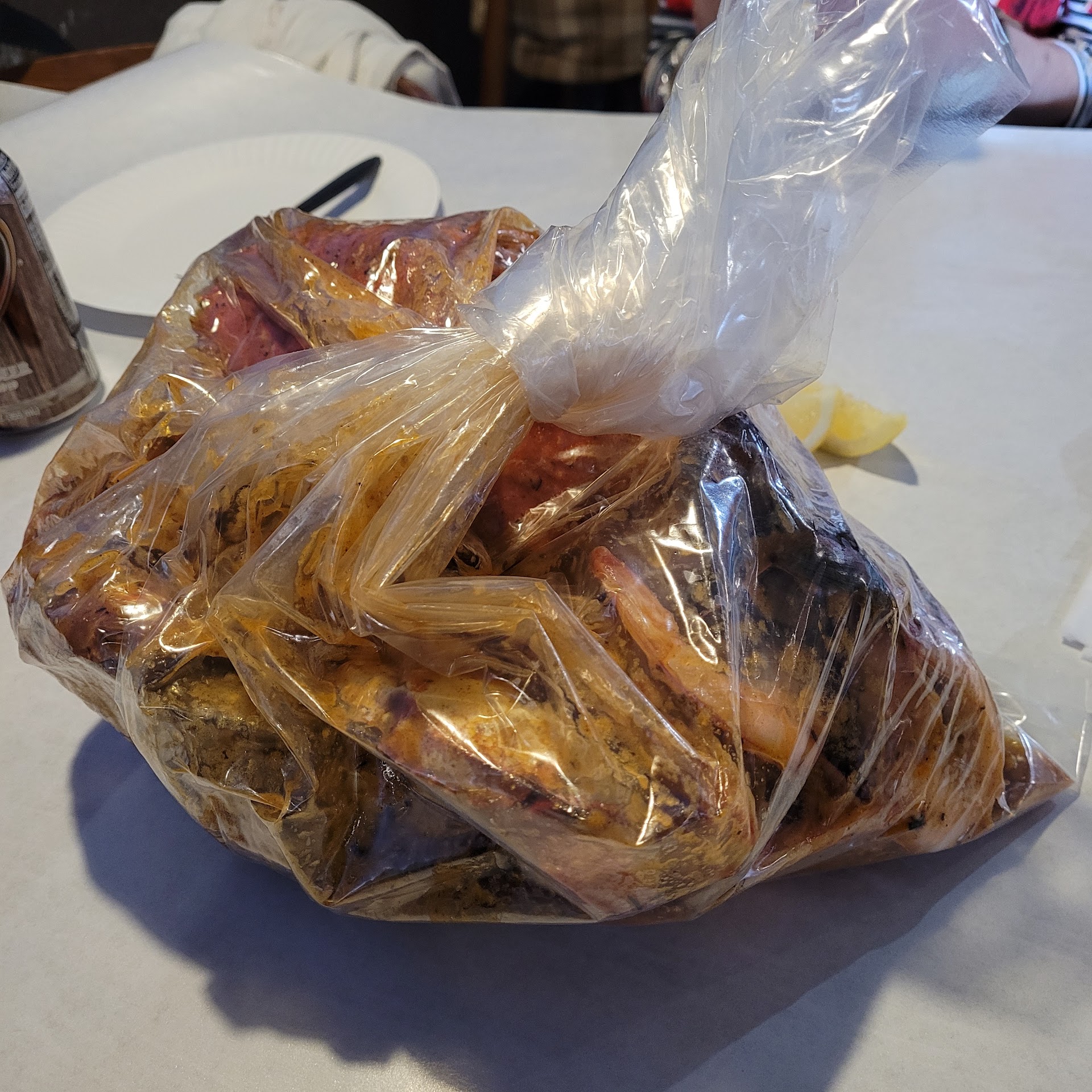 I've gone to Shaking Crab at least six times since it opened a few years ago and really love ordering Combo One ($26.95) with the original Cajun seasoning. The food comes in a see-through plastic bag and once you untie it, you can dig in.