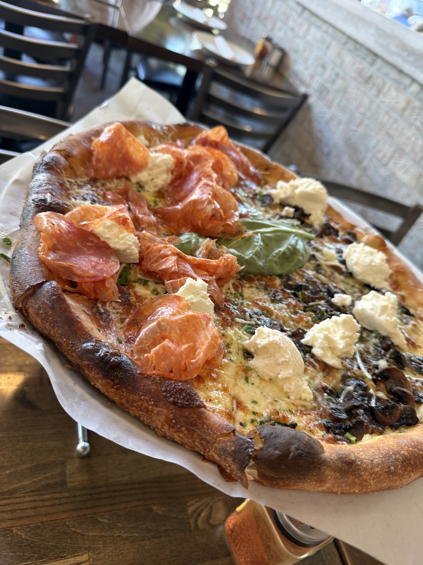 When I go to a place for the first time, I always order a cheese pizza (here, The Original) as the baseline test. What they brought out was the most beautiful pie I've ever seen, and one that tasted as good as it looked. The crust was outrageous...thin undercarriage but enough support, great undercarriage, nice crisp on the crust with amazing chew, and a perfect char. Best crust I've had, I believe. The sauce was fresh and bright, clearly a very high quality sauce brimming with flavor. The cheese was the perfect amount and incredibly delicious. Pleasing cheese pull when removing slices when it came out piping hot and fresh. There was very, very finely chopped basil on top which I loved---I like the basil flavor on a pizza, but hate biting into a leaf a la Margherita style. It was a great touch. The freshly grated pecorino romano on top was the perfect finishing note. Truly no notes on this pizza, it was amazing in every way. We (2 people) finished this pizza quite easily. While I'm not a skinny man, and while I do eat a lot of pizza, I never house half of a pizza in a sitting at a restaurant. I couldn't stop.