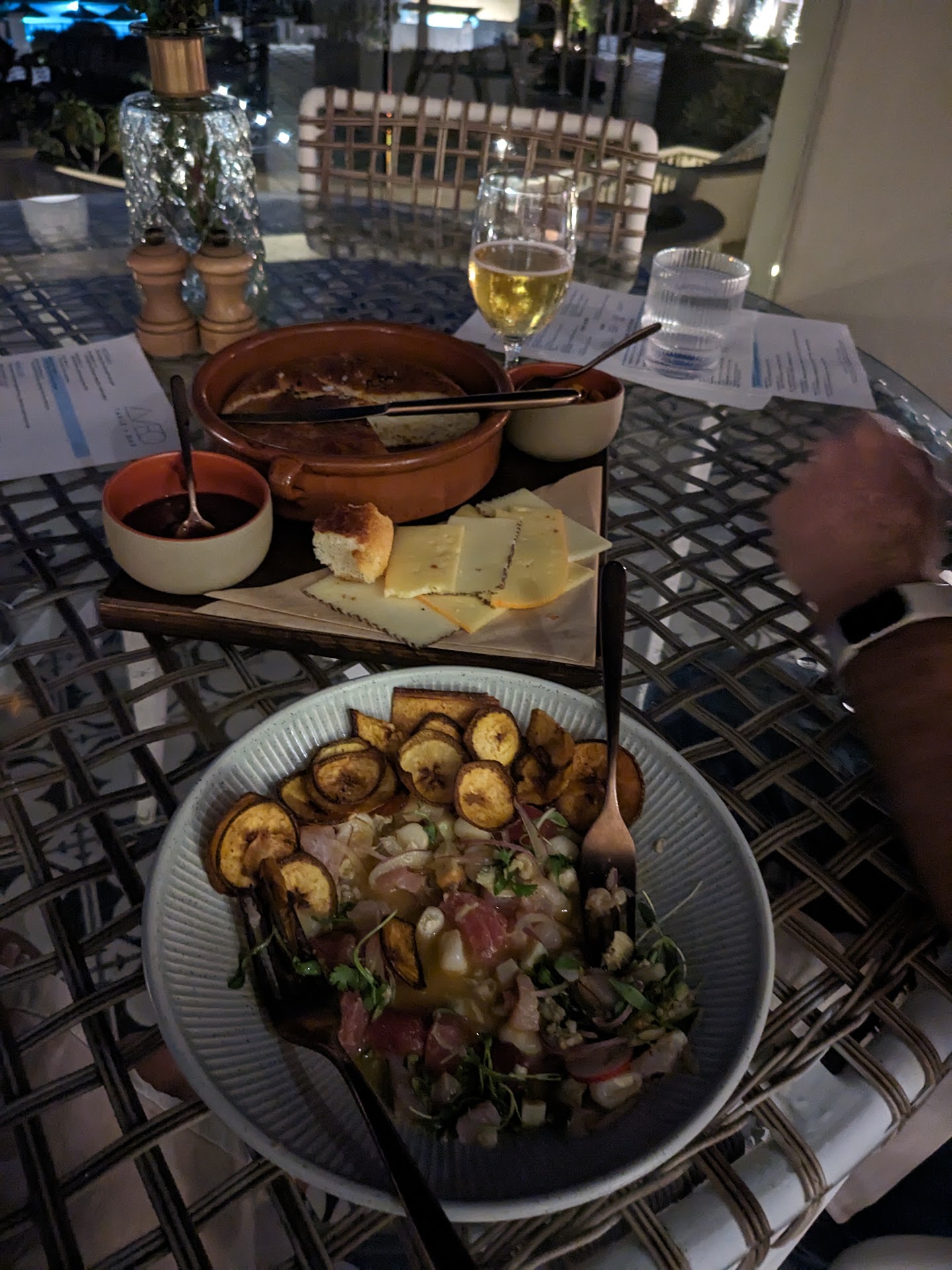 Concert worthy live music (Santana would be proud) Ocean & Pool views Warm and friendly service from the bartender (Marvin - best smile in Dana Point) 5 ā's for the Legaris, 2018 Tempranillo, Ribera Del Duero (Dry, Cherry, Cocoa & Oak) ... yum! I cheated on my keto diet & ate a few of the croutons on the Caesar salad. It was better than dessert. Perfectly dressed with a hint of Peruvian spice and yummy pepitas for crunch I wanted the MOJO chicken, but heard that it ran sweet (ugh ... the crouton was my cheat) ... I ordered the filet with Chimmichuri (Pittsburgh style) It melted in my mouth. A+++++++++. I skipped the potatoes & green beans, but only because they weren't diet compliant.
