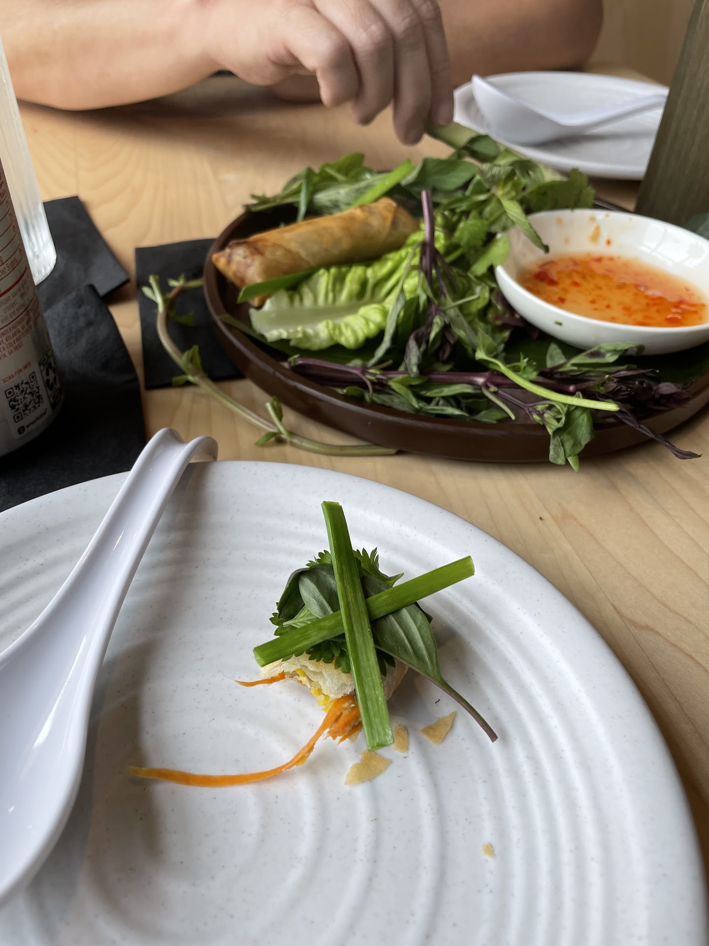 Their soft opening menu, which we were given when we were seated, had a good selection of items (including vegan items) which all sounded good. We ended up ordering the following: Crispy Egg Rolls, Smoked Pho, and the Original Pho. I also ordered a Lychee Hibiscus to try as well.