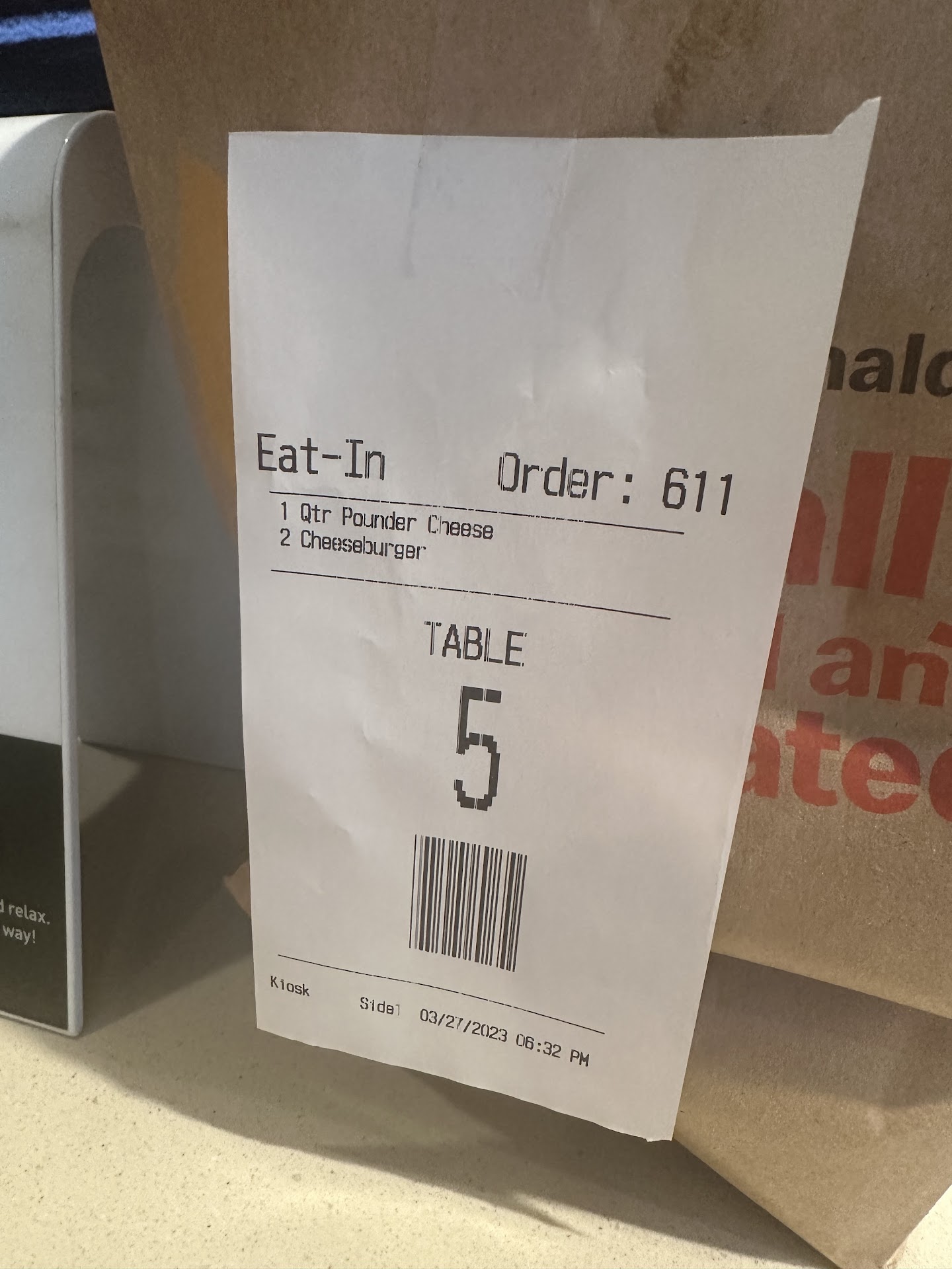 Read moreTonight I tried the curbside pickup at this McDonald's and am so irritated by the results. Instead of getting a large orange soda, I was given a coke. My son's yogurt tube was hot so it wasn't safe to eat anymore. My bacon, egg and cheese biscuit was old and stale and my hash brown was cold. Yes, I should have checked my order more thoroughly before driving home, but I had a crying two month old and a tired four year old in the car so I quickly made sure all of my items were there and drove home.