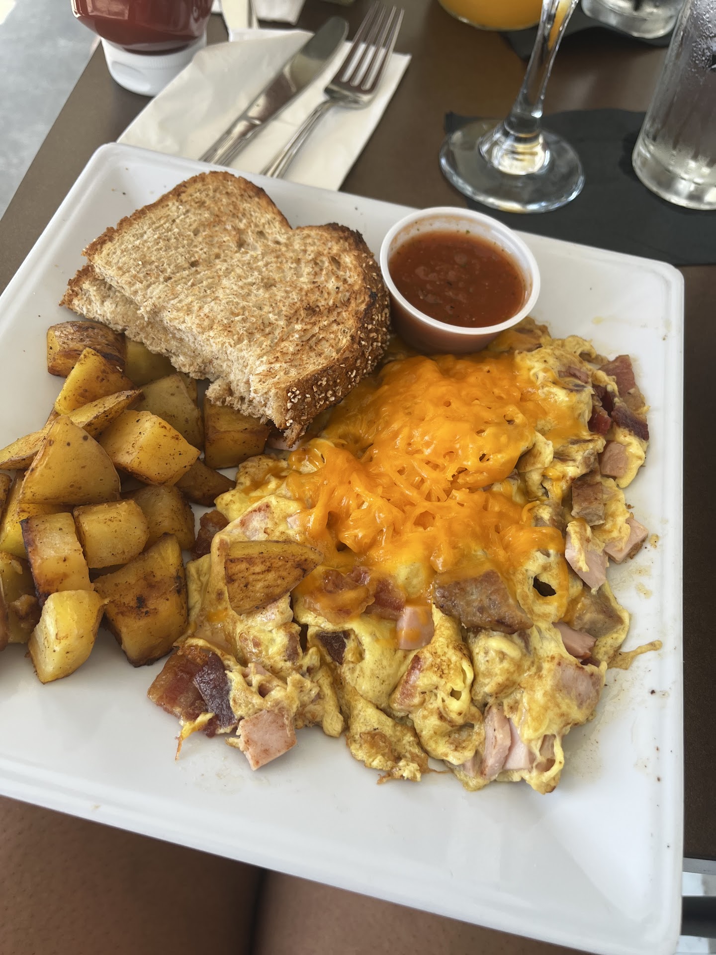 Read moreI couldn’t be more pleased with our experience at this restaurant. Upon arriving, it was not hassle with seating. We sat outside. Pets are allowed on the outside. Beautiful boat area where you can watch while you eat. The guest within themselves were friendly! The server greeted us, we ordered morning drinks. Then breakfast! While waiting the owner came out talking to everyone. Seems like a norm, the other guest knew him. He asked us where we was from, he was thrilled to find out we were from TN. We discussed the area and he gave my husband inputs on the areas that surround us while visiting this area. When our food arrived, which was in no time, he ceased the convo and let us eat! The pets were even given water bowls. However the food was very good. I got the meaty omelet with short stacks. My husband got French toast. Our waiter checked in on us often. The potatoes were seasoned, pancakes were fluffy and good. If you like omelets it was very meaty. Thank you Mr.Steve and our waiter thanks for an awesome experience. Please go visit if you’re in town...