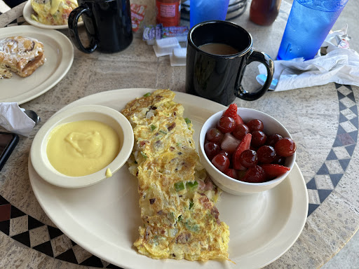 Read moreThis food was delicious and while the only option for anything gluten free was toast, I was told by my company that the grilled cinnamon roll was very good (gluten full). I was also truly happy to have no melon in a fruit cup. Pineapples and berries were the perfect complement to the giant omelette I ordered. I ordered the hollandaise sauce on the side and asked the waitress to see if there was any wheat flour in it ( like some quick make packet from the store) she informed me that it was true hollandaise. The patio was ideal for a quiet...
