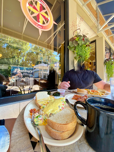 Read moreWe got lucky and got there before it got super busy. They have tables that they can add chairs to make larger seating for parties inside outdoor seating in front too. It was loud in there but still enjoyable. The inside space is just a little tight. The food was cooked perfectly! They offer breakfast all day which is great too. The mushroom burger and grilled cheese with ham added was what we went with. The fries were good but the onion petals were amazing and come with a tasty dip...