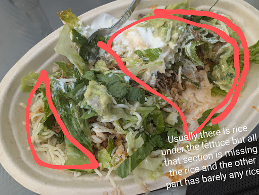 I go to Chipotle once or twice a week, and this is the third time that I have been extremely dissatisfied with this specific location. I am not one to go in right negative reviews, I typically brag about how good certain places are and just stay away from others, but the fact that I have never once gotten a solid meal or been satisfied with the customer service, It's very disheartening. I have worked in the food industry for 7:00 or 8:00 years now, and I understand the stress and pressure and heat that goes on in kitchens. But this is just extremely underwhelming and frustrating. Not only did I waste my time, I also wasted money, and feel like I have been jipped.