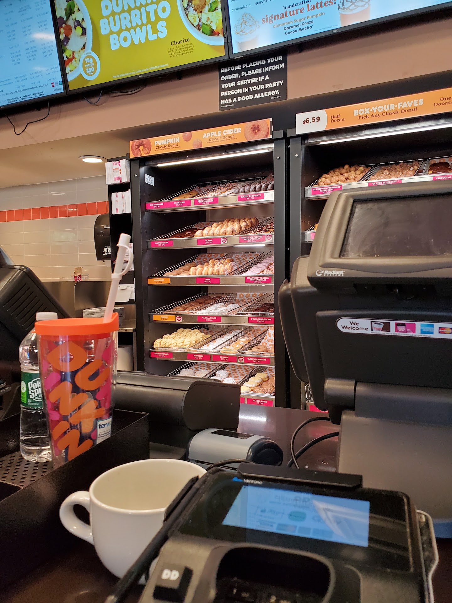 Read moreEvery time I come here the service is tolerable, except for tonight. We walked in and there was only a couple ordering inside and two people working behind the counter that we could see with no one in the drivethrough. The guy at the counter had taken the couples order and instead of saying one moment he walked away behind the corner where we couldn’t see him and started talking and laughing with the girl that was on staff with him. When I said “hello, can someone take our order.” He popped his head from around the corner and yelled “I told you to wait a minute while I make their order” which he did not say to either of us when we stepped up. We walked out and they just lost two customers. Also I have seen this one worker be extremely rude to other customers as well a few times before this. He needs to stop flirting with his coworkers and show some real customer service. Dunkin lost a loyal customer today. I have the app and I don’t intend to use it at that Dunkin anymore. Disappointing. We went across the street to pricerite and got an entemanns marshmallow devils food cake instead, which was way better than the stale donuts and bagels that this particular Dunkin’ Donuts has given to me before. (I was told that the rock hard bagel in my hand wasn’t stale and that that’s just how they come after I asked them to make...