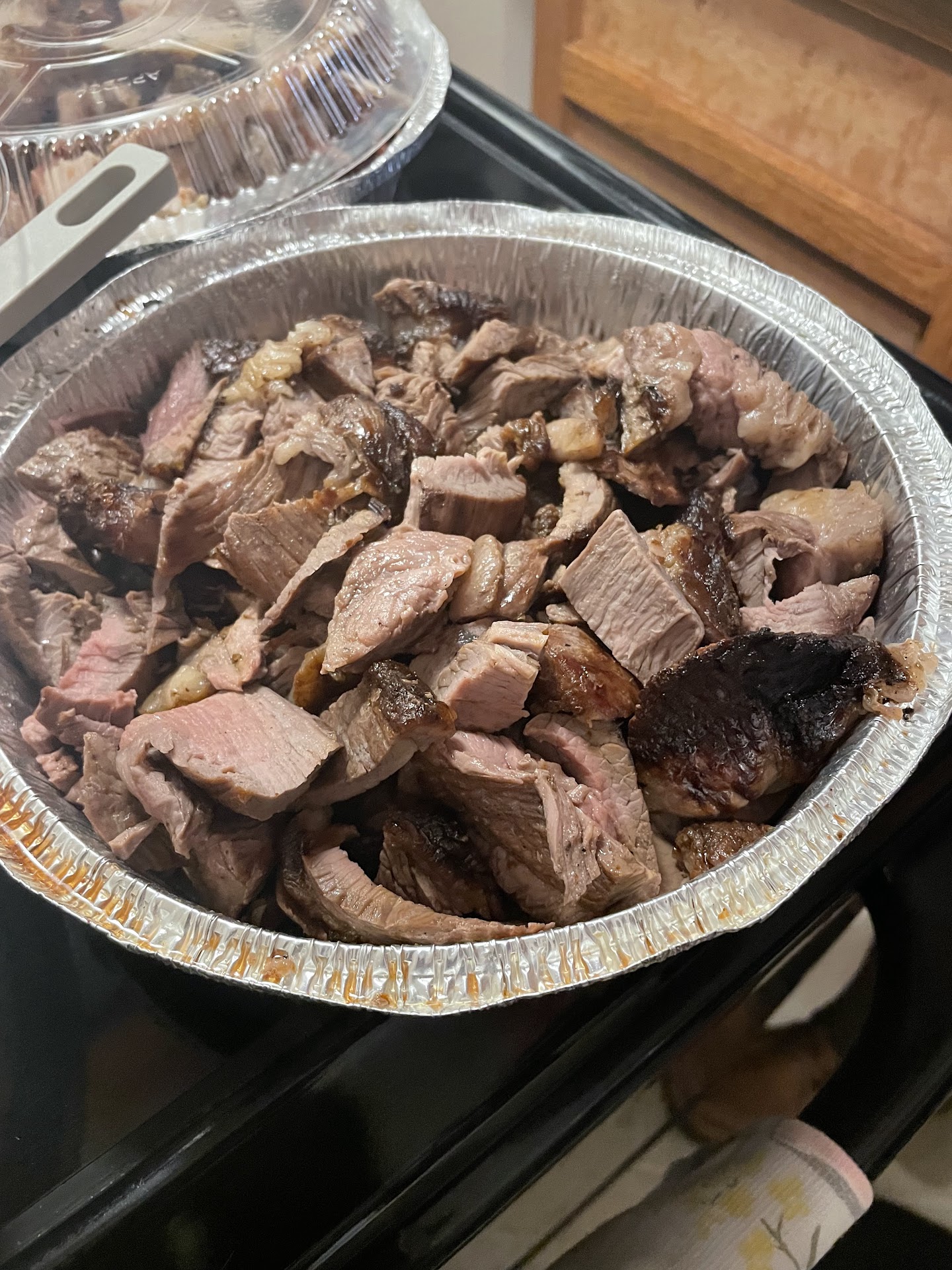 Read moreNot a NYC Style Fixed Price Churrascaría with a choice of 100+ self serve salads, stews, soups and side dishes and a parade of high quality cuts of meats on the skewer, sliced at your table, but a pay by the pound cafeteria, where a workman can get a hearty meal before/after his shift. No trays, just a take out tin or paper plate greet you over very limited fresh salad ingredients – so unappealing that this salad/veggie loving family took none; then a choice of either white or yellow rice; white or black beans; 4 hot table dishes and then 6 rotisserie items sliced to order: though fresh and well seasoned, none of the meats was a high quality cut and the steak was tough. Frankly my favorite rotisserie items were the pineapple and sausage.