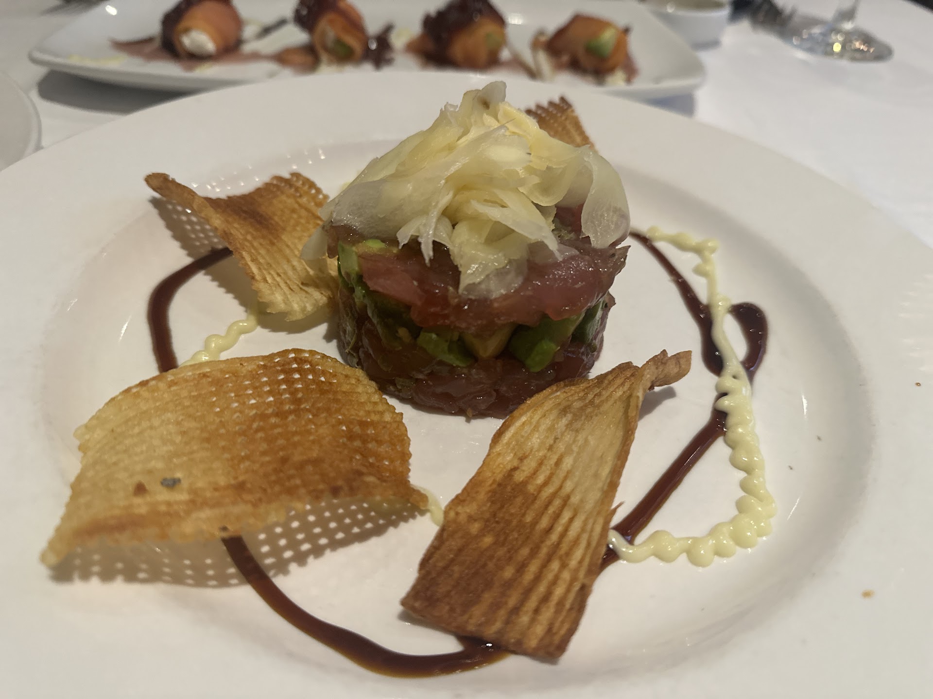 Forgoing traditional entrees, we opted for a diverse array of appetizers to fully explore the restaurant's offerings: Chilled Raw Oysters: Fresh but petite, the oysters were delightful, albeit smaller than expected. Tuna Tartar: Elevated by an exquisite sauce, this dish was a flavor revelation. Jumbo Shrimp Cocktail U8: Generously sized, these colossal shrimp were so ample that sharing became a necessity. Red Wings (Teriyaki): Flavorful and juicy, yet slightly on the salty and tough side. I suspect a blue cheese or ranch dip might have balanced out the saltiness. Maine Crab Cake: The inclusion of mango salsa provided a refreshing counterpoint, making this dish particularly enjoyable, especially for my wife.