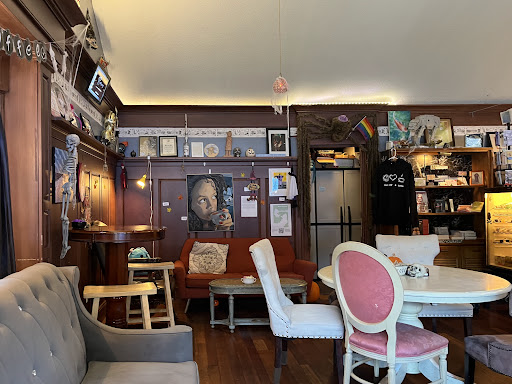 The general interior has a lot of warm colors and feels homey with a variety of seating and tables so that each area feels special. The walls are decorated with art from local artists, most of which are available for purchase. The owner has a bit of a Star Wars theme going with some of his decorations.