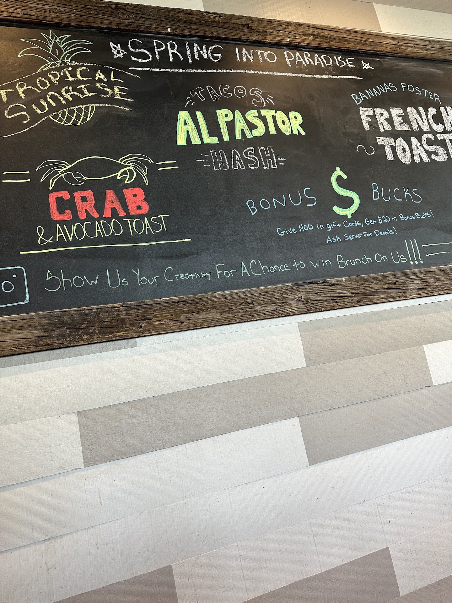 Read moreI'm editing my review. The first review follows. This was not a good experience to. Too crowded and too long a wait. The worst part was my food. I ordered eggs, over medium, greens, toast, and turkey sausage. There were four of us. Two orders came out first and then we had to wait for a little while for our other two orders. Mine was in the second round. The eggs were so loose and runny I had to send them back. They only took the eggs. I finished my greens and sausage before the new eggs came back. The toast was cold. Then the second set of eggs was just as bad as the first. Shimmy, runny, and uncooked parts of the whites. Needless to say isn't was so late I didn't get my eggs. The service was not good. We had Kelli (with an i). She really didn't seem to care and just said sorry. She never smiled once the whole meal. When she was pouring the coffee, the guest who got decaf complained it was not hot. She stopped in the middle of pouring the regular coffees and left. We think to take care of it. She came back so.etime later to finish pouring our coffee and never mentioned if there was a new pot brewing for the decaf. There was eventually. My guests go there all the time. Sometimes good sometimes bad. Today was terrible. It's hit or miss at this location. So from 5 stars to three. Maybe it should be less since I left hungry and nobody seemed to care.
