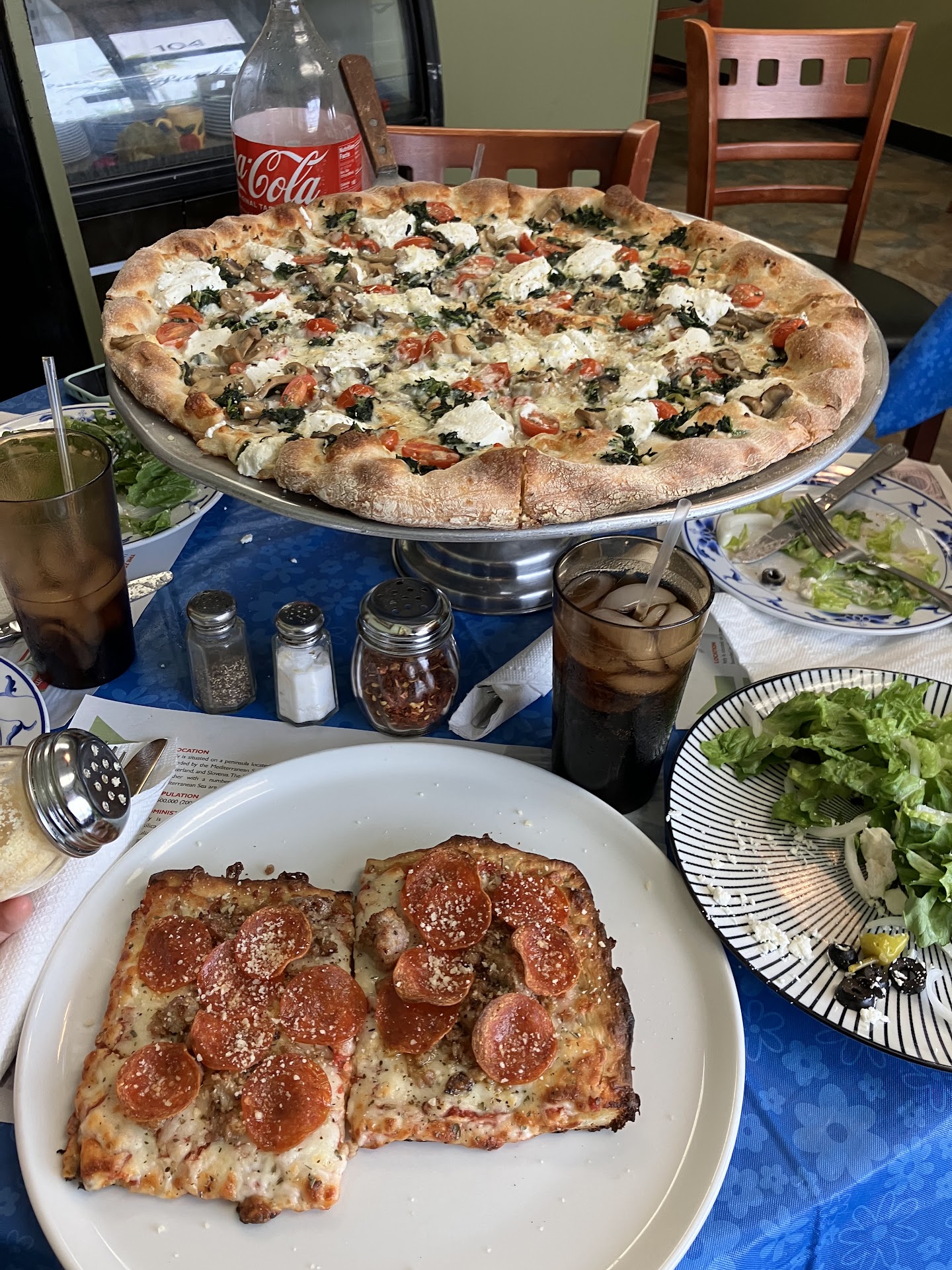 Crampt little pizza joint, not worth the money. Rude owner that jacked me up 5% when I wanted to use my credit card. Over priced typical boaring tasting pizza. Sloppily prepared dishes swimming in cheap spaghetti sauce. 18 dollars for a greek salad that was a pile of lettuce and a few added items to call it greek. I don't recommend at all, but see for yourself, don't take my word for it.