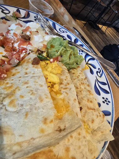 Read moreThe food was very delicious! I thought it was so worth it. When arriving it was a little weird standing and waiting just because there's no hostess and you wait for the waiters or bartender to call you somewhere across the restaurant. I recommend getting a hostess or just let people sit but I know you don't really want that. Anyways, once seated my husband ordered a simple breakfast plater but I wanted a quesadilla, unfortunately I was there slightly before breakfast ended so I got the breakfast quesadilla with chorizo. BEST CHORIZO I HAVE EVER HAD!!! It literally shocked me. I love Mexican food so I was super happy. The waiter recommend a slightly spicy sauce because I like a little spice and that sauce changed the game even more. The guacamole tasted fresh. I wish I could have tried more food but what I got was super good. The waiter asked if we wanted water which should be free but he said I know your gonna travel, " do you want it to go" i said sure but he ended up charging us for a bottle of water, just make it clear it's a bottle of water and not a to go cup of water. But I do...