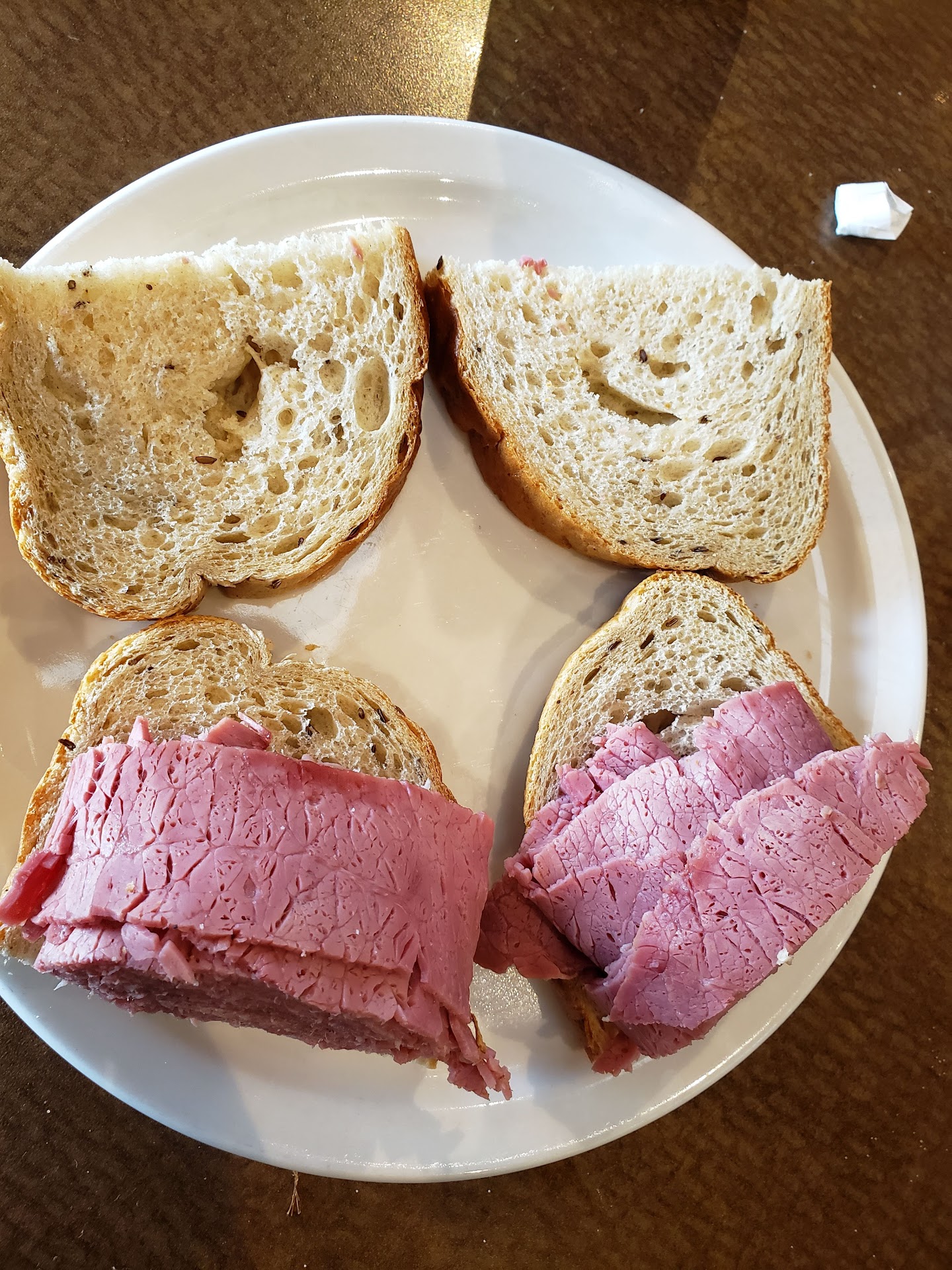 We sat down and our waitress Rosa was very kind at first, asked us for our drinks etc. Made sure to enter my 4 year old food first. Now my husband ordered the chicken sandwich and I ordered the Cuban sandwich and instead of fries, sub Matzo ball soup with a peach tea.