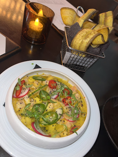 We started with the sweet corn empanadas, which come three to an order and are actually pretty large. We each had one and took the third home. They were perfectly crunchy, not greasy at all, and filled with manchego cheese and avocado purée, aji amarillo, served with a chimichurri sauce that tied everything together. Next, we had the ceviche amarillo, which MC recommended, and it was phenomenal. It featured hamachi, cucumber, red onion, and mango, and the balance of flavors was so refreshing and vibrant. It’s one of those dishes you keep thinking about after the fact.