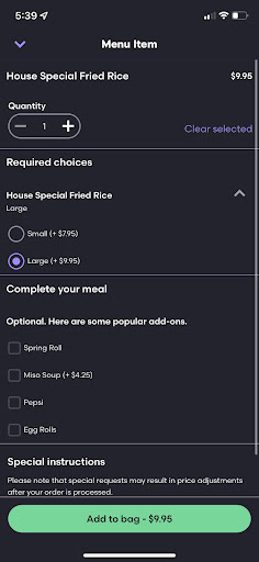 Read moreThe person yelled at me through the phone when I was simply trying to explain that on grubhub it does not specify that the house fried rice includes shrimp. The person on the phone then goes to blame me saying that it was my fault that I ordered the item and didn’t click “no shrimp” when there is literally no button for “no shrimp”. I just wanted regular fried rice and was willing to pay but he just kept cutting me off to the point that it started an arugment. Not my fault that grubhub doesn’t specify what comes in the house...