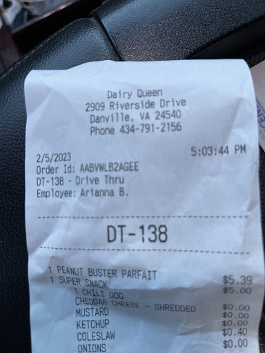 Read moreAs much as I love Blizzards, sometimes it’s a hassle to go to this DQ. It’s nothing but kids working here, who act like they don’t even want to be here. In the drive-thru, they are constantly texting in their phones or playing, laughing and joking with their other “kid” coworkers. When you ask for a cupholder or top for your ice cream they get an attitude. They tell you to pull up to “Park 1” because somebody messed up your ice cream while mixing it (how hard is it to put flavors in a machine and push a button to mix ice cream?) and why do you have to pull over to “Park 1” when there is nobody in the drive-thru behind you? I can go to DQ two days in a row and order the exact same thing, i.e. a cookie dough blizzard, one day it will be nothing but chocolate ice cream (it will look like nothing but chocolate milk) and cookie dough pieces and the next day it’s vanilla ice cream (white ice cream) and cookie dough pieces. And since this is the only DQ in Danville, why is it not a DQ Grill location? Sell something else besides hot dogs and potato chips…oh and now BBQ...