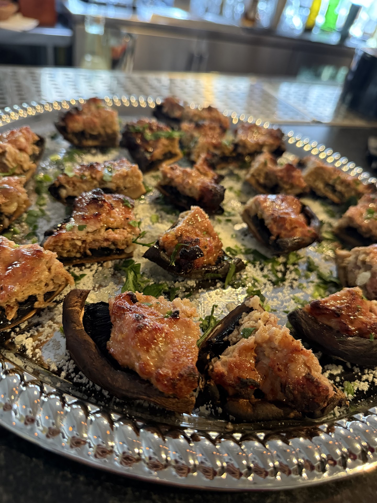 The olives were all green olives that had been cured in water brine - extremely salty and tasted like they were from a can. I would have expected a range of different types of olive cured in olive oil and herbs.
