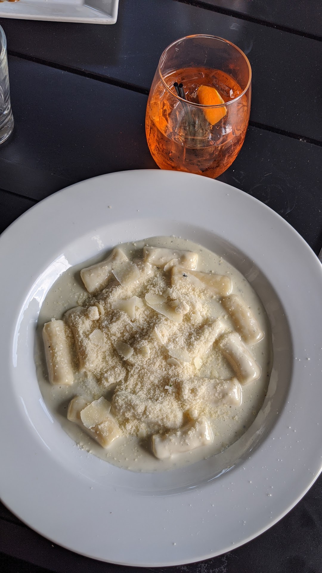 To start with the good: The service and staff at Mangia Mi are wonderful and friendly. Drinks are good - we ordered the house wine which was an extremely generous pour and what tasted like a good Merlot blend.