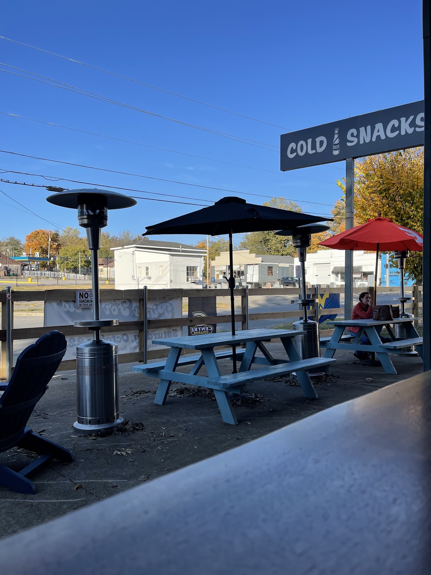 The atmosphere is great! The bar and dining area are open to the outside, so it can get a little toasty, but they have fans. Also, having the front and back of the building open allows for good airflow. It may get a little warm, but it's never stale or stuffy. Also, there is a LOT of outdoor seating. The "backyard" portion of Morley's Backyard is really nice. Also, the music has always been on point. The playlist rotates through several genres, so, as someone who doesn't like country, I can deal with the occasional country song.