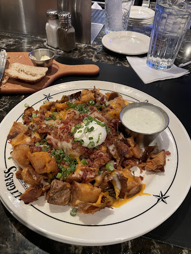 Our server was great and came immediately, asked if we wanted drinks and appetizers. We ordered drinks but took a little while to decide what appetizers. She was very patient with us. A few moments later we ordered our meal, little surprised that the meal only had one side, but not a dealbreaker. Our appetizers came quickly! Range Rattlers are a must try, delicious, we also ordered loaded fries which were good, nothing noteworthy for the price, but good. When appetizers came out we started to realize how small the table was for 4 people at a steakhouse. We made it work but we arenât really large people by any means. Itâs definitely more of a 2 person table but we made it work.