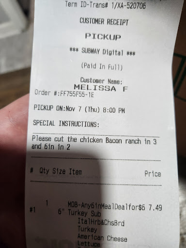 Read moreNEVER USE MOBILE ORDERING… I went to get lunch with a friend who put in a mobile order before coming and I waited in line to order. After 20 minutes I learned that they do not complete mobile orders until all customers in the store are served. Only two people were working and the line continued to grow. My friend would never get their sub at this rate so he had to leave to get food elsewhere. Only two people were working and they were doing their best. This policy is terrible, orders should be completed as they arrive, in person or by...