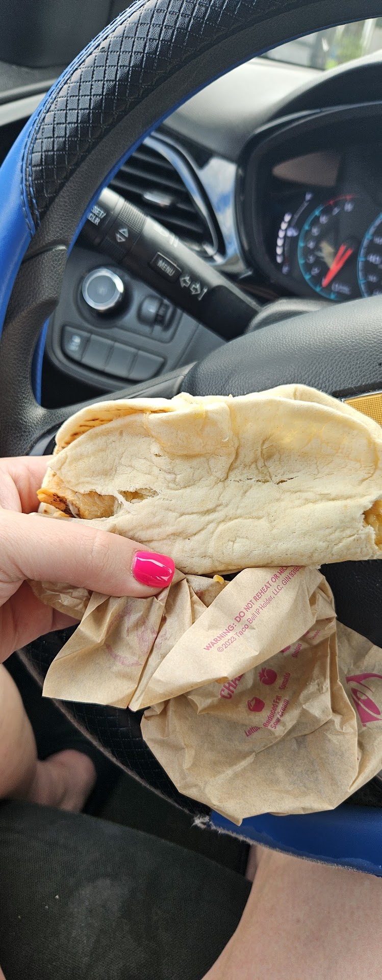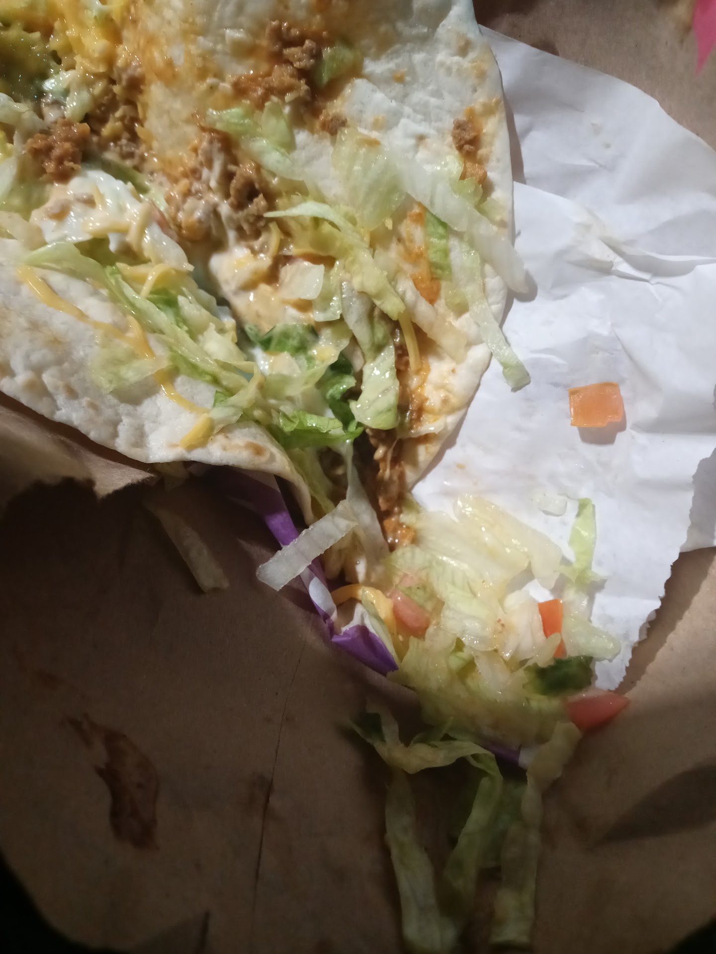 Read moreOkay usually I am happy with this particular taco bell but not tonight 10-2-2021 . There was an extremely long line and wait in the drive thru . When I ordered i specifically asked for 3 soft tacos add sour cream, which means that's just lettuce, cheese and sour cream , the drive thru attendant ask do I want tomatoes I plainly said no tomatoes . Now my husband and I got our order and what do I find all 3 of my soft tacos with tomatoes . I hate tomatoes . And they want 15.00 an hour for getting orders wrong . I wasn't about to wait in the drive thru for another 30 minutes to get different tacos . Get it right...